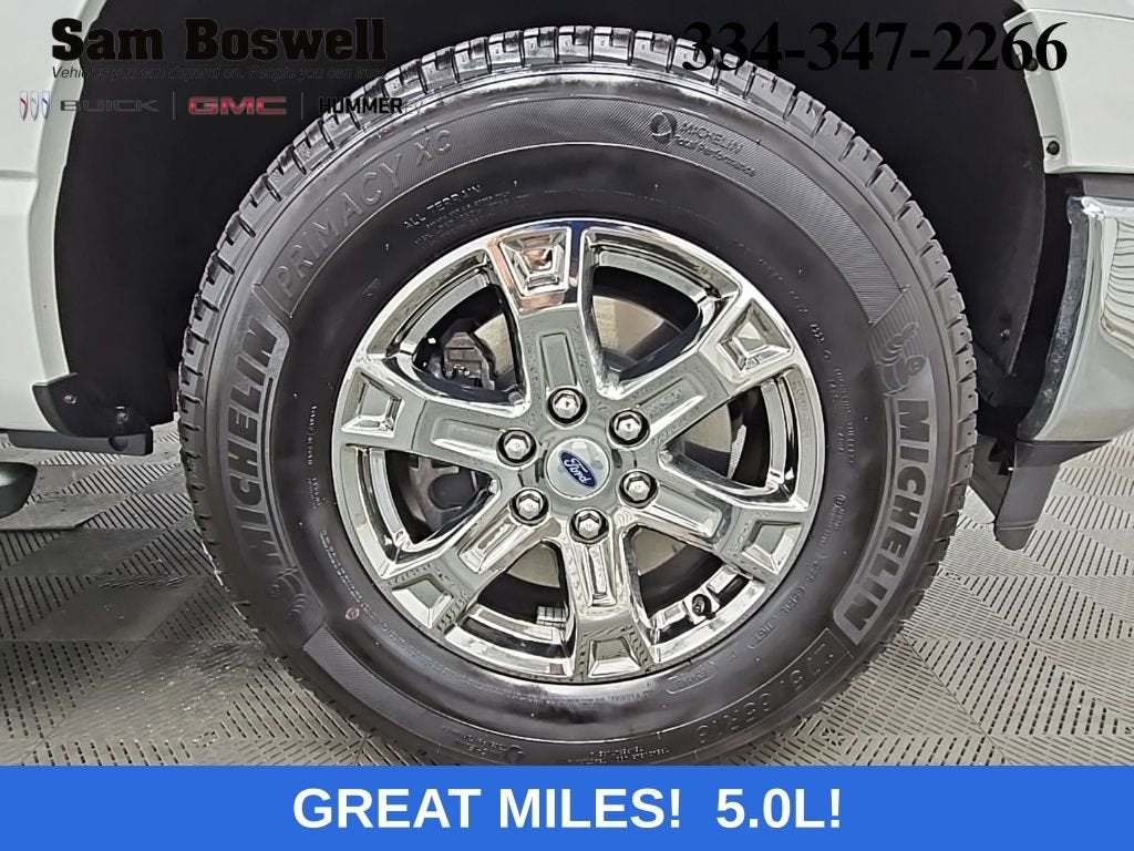 The powerful 5.0L V8 engine, paired with a 10-speed automatic transmission and 4-wheel drive, delivers the performance you demand. With an EPA-estimated 16 city/22 highway MPG, this F-150 strikes the perfect balance between power and efficiency.