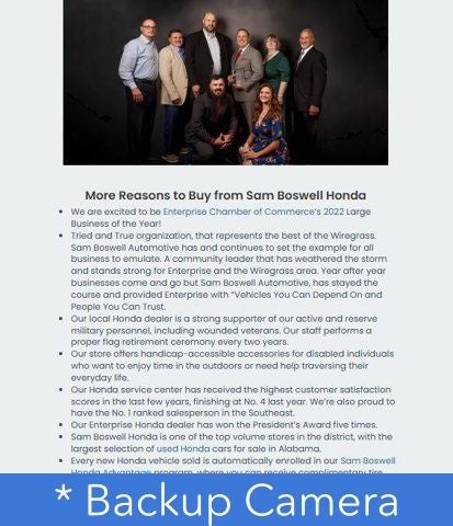 Certification Program Details: Type your description here We price our vehicles to sell fast! Advertised price includes Financing Discount Through Sam Boswell Honda of $750. To save time, please call ahead to ensure it's still available. (334) 417-0408.